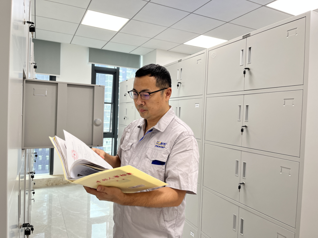 自從2022年集團(tuán)總部搬遷至新大樓以后,因空間有限,部分檔案存放至云池,時(shí)常有退休好些年的老同志來請他幫忙查檔案,他毫不推諉,第二天一大早就乘坐上云池港交通車,來回奔波四十多公里,仔細(xì)查閱確認(rèn)詳細(xì)檔案,再給別人耐心答復(fù)。