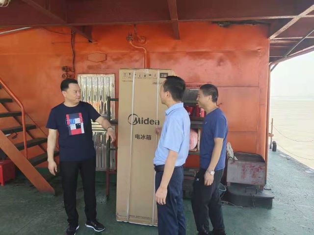 7月14日上午,烈日炎炎,熱浪襲人,集團黨委委員、副總經理龐小波,安全環(huán)保部部長劉靜遠來到水上服務分公司宜昌港城區(qū)六碼頭,送來一臺三門冰箱,為“宜港拖1001輪”贈送洗衣機一臺,解決了船員們在船工作和生活的實際困難。